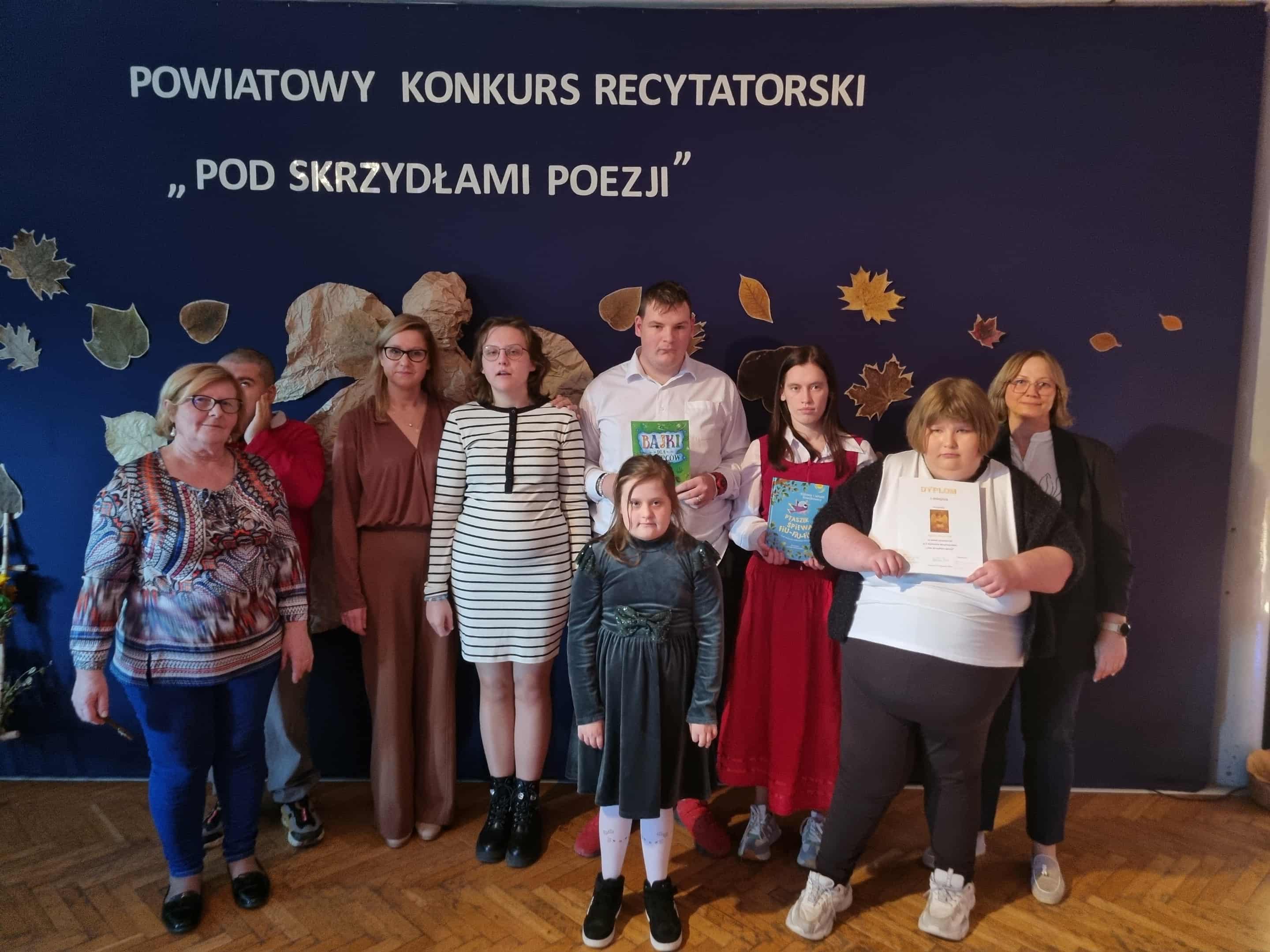 "Pod skrzydłami poezji" 13 listopada nasi uczniowie wzięli udział w X Powiatowym Konkursie Recytatorskim "Pod skrzydłami poezji" w Strzeszynie. Uczniowie zajęli pierwsze miejsce. W nagrodę otrzymali pamiątkowe dyplomy i książki. Gratulujemy udanego występu.